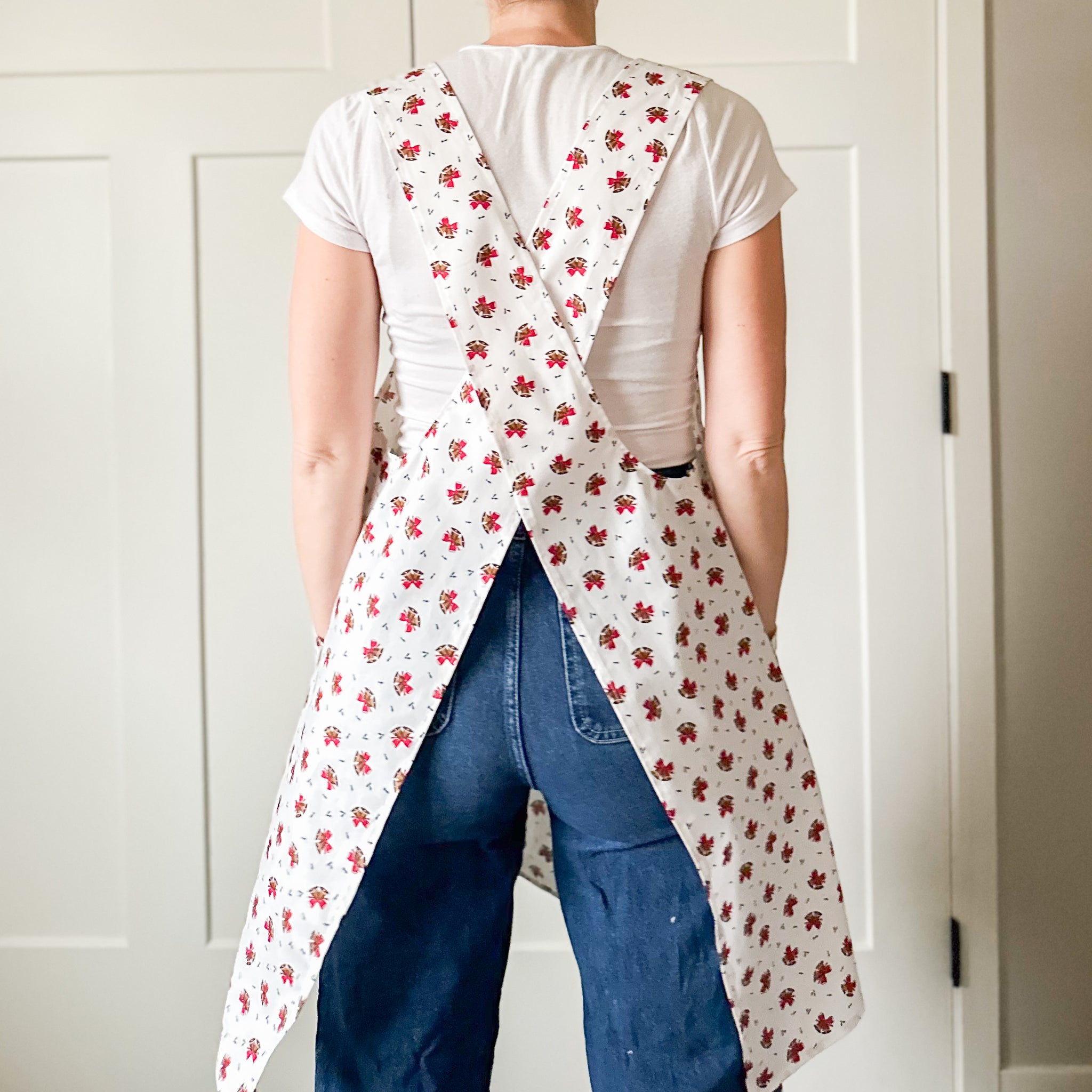 Stay comfortable and organized while you cook, craft, or garden in this handmade apron. Designed with a crisscross back for an easy, no-tie fit, it offers all-day comfort and effortless wear.