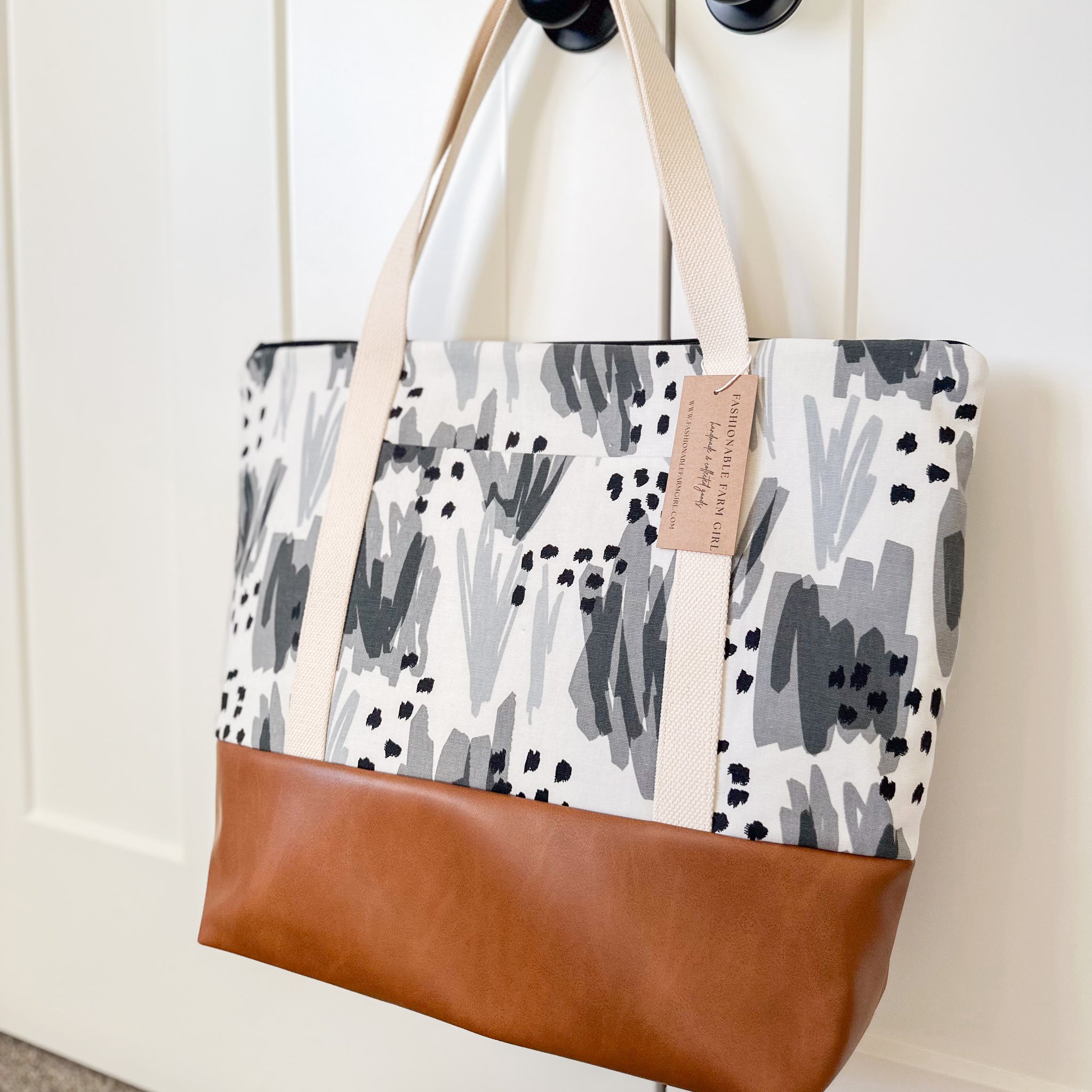 The options are endless with this vinyl lined handmade tote bag! Yes you read that right, the lining is a wipe able vinyl...and it's cute! The regular size tote bag is perfect for work and the large size will hold all of your (and your kids essentials) for weekend activities. You'll find yourself reaching for this bag over and over again because of it's versatility.