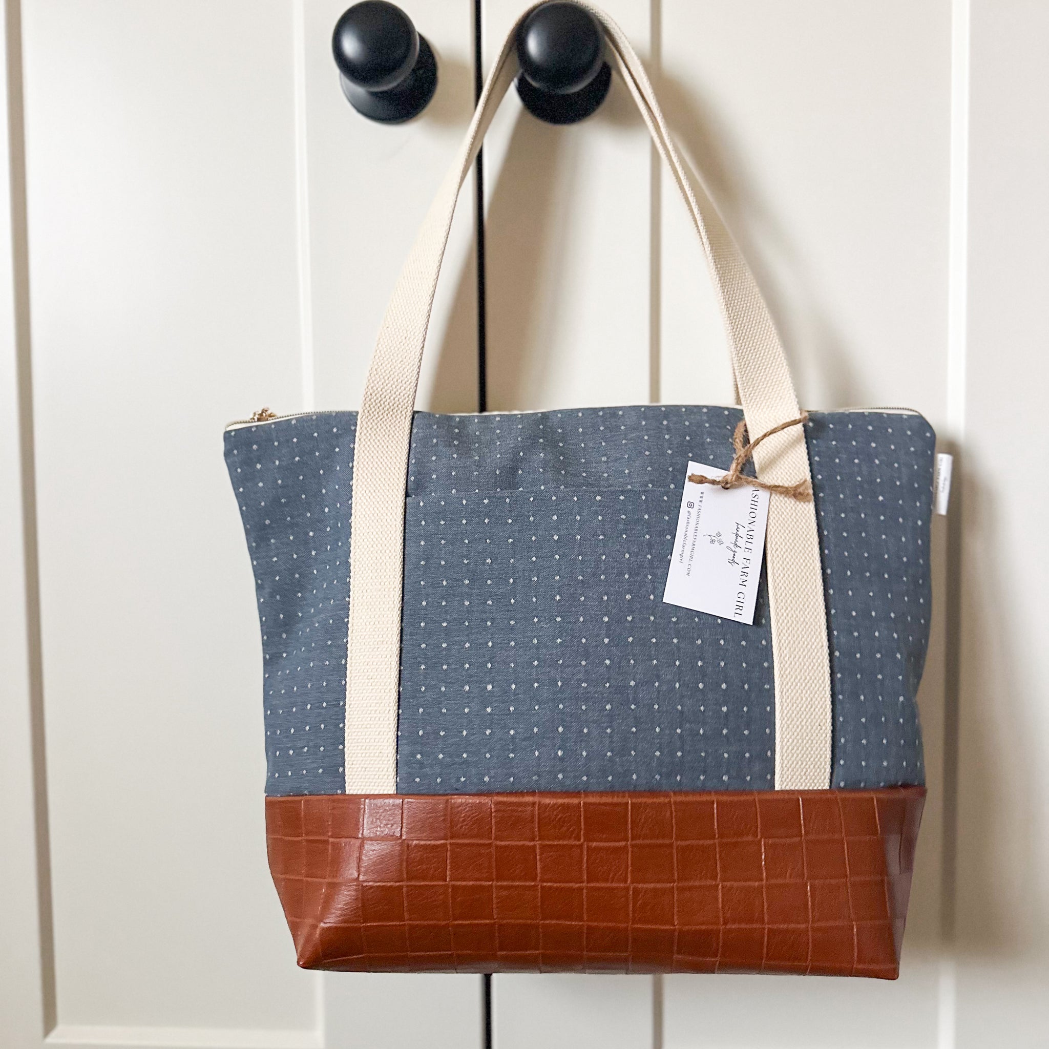 The options are endless with this vinyl lined handmade tote bag! Yes you read that right, the lining is a wipe able vinyl...and it's cute! The regular size tote bag is perfect for work and the large size will hold all of your (and your kids essentials) for weekend activities. You'll find yourself reaching for this bag over and over again because of it's versatility.